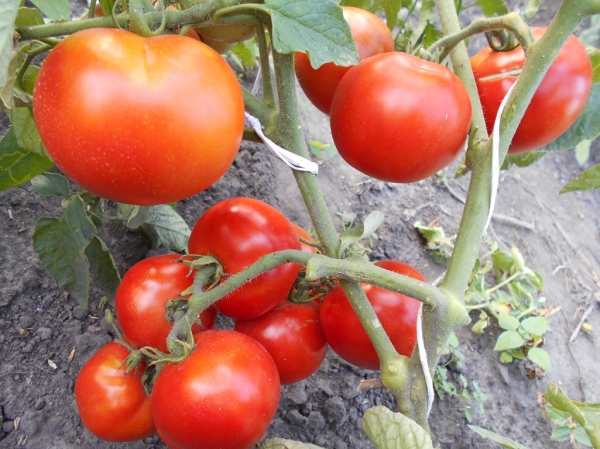 Плоды ровные, плоско-округлые, красного цвета, с отличными вкусовыми качествами. Масса плодов 200 - 400 г. Высокоурожайный ранний сорт. Отлично завязываются плоды при минимальном уходе. Кусты высотой 50- 70 см, с мощными стеблями.