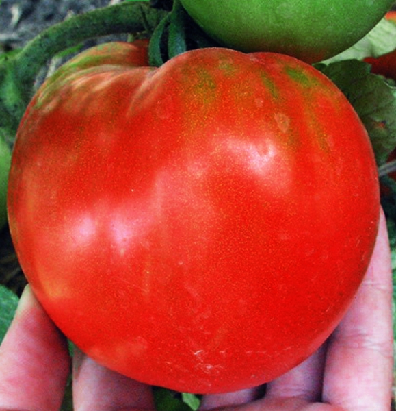Плоды красные, плоско-округлые, с плотной, сладкой мякотью. Масса плодов 250 - 400 г. Раннеспелый низкорослый сорт. Уникальный болезнестойкий сорт – даже когда рядом все остальные сорта стоят черными, у Мармеладного все листья зеленые и обилие плодов.