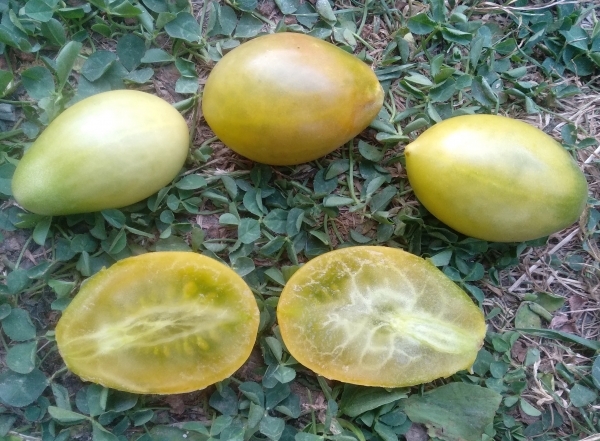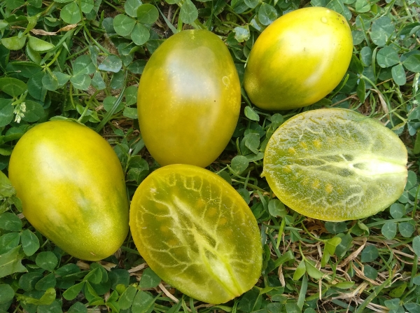 Плоды грушевидной формы, в спелом виде остаются зелеными, не трескаются, не гниют и отлично хранятся, считаются самыми сладкими из грушевидных. Масса плодов – около 70 - 120 г. Идеально подходят для цельноплодного консервирования. Высокоурожайный, среднеранний сорт, иммунный к грибковым заболеваниям. Кусты высотой до 2 м.