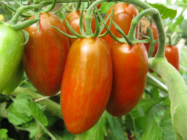 Сорт ранний, селекции Тома Вагнера (США). Потрясающе красивые удлиненные плоды-мизинчики красного цвета с золотистыми извилистыми полосками, очень вкусные, сладкие, красиво и оригинально смотрятся в банках. Кусты высотой до 1,80 м. Плоды массой около 30 г.