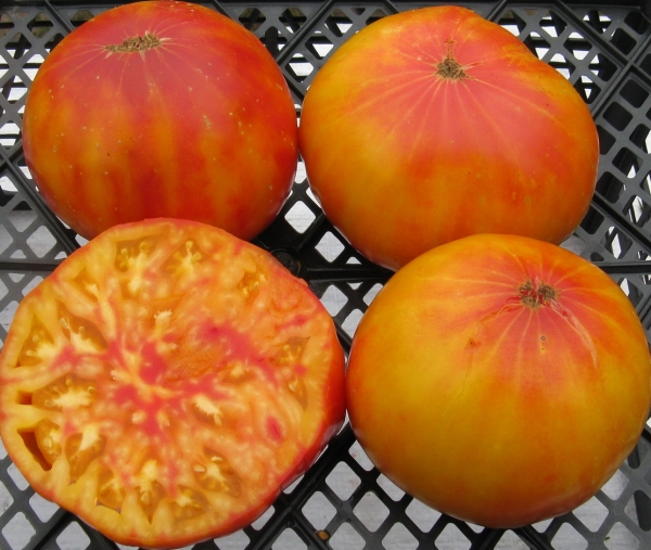(США) Плоды плоско-округлые, жёлтые с розовыми разводами, плотные, вкусные, массой до 800 г. Сорт среднего срока созревания. Высота куста до 1,20 м.