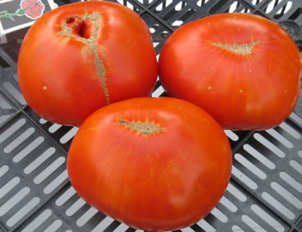 Плоды красные, округло-сердцевидные, без зеленого пятна у плодоножки, одномерные, плотные, без повреждений. Отличный вкус. Масса плодов 600-800 г. Устойчив к болезням, частичная иммунность к вирусам. Идеальны для рынка – прекрасный товарный вид и транспортабельность. Сорт среднего срока созревания. Высота кустов до 1,50 м.