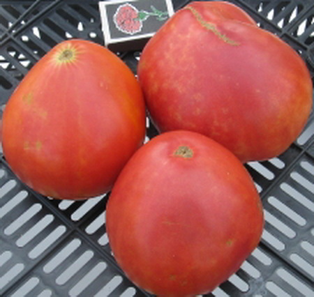 Семейная реликвия Амишей. Плоды розовые, округло-сердцевидные, мягкие, без трещин, мясистые, сочные, очень сладкие, с прекрасным ароматом и высокими вкусовыми качествами, малосеменные. Масса плодов 300 - 700 г и более. Из зарубежных описаний известно, что плоды этого сорта могут достигать веса 1300 г. Среднерослый, среднеспелый, урожайный сорт. Кусты высотой 1 - 1,2 м.