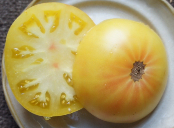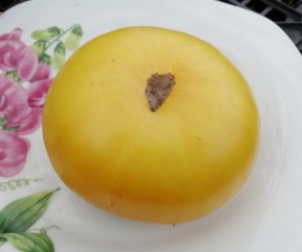 Плоды желтые, часто с розовой верхушкой и красивыми розовыми лучами к низу, имеют прекрасный вкус. Масса плодов от 200 г и более. Сорт среднего срока созревания. Кусты высотой до 1 м с суперкартофельными листьями.