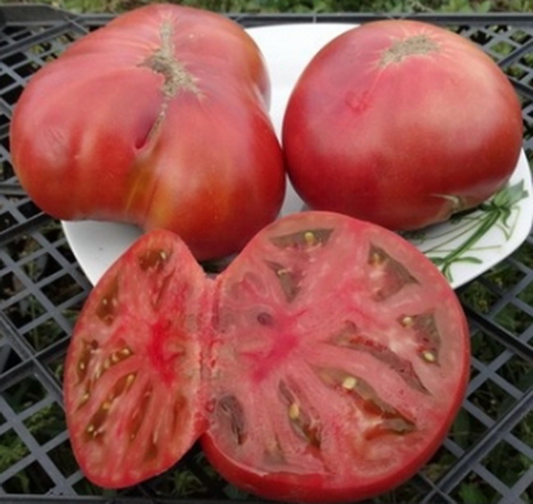 Плоды необычно насыщенного красного цвета, с фиолетовым оттенком, плоско-округлые, прекрасного вкуса. Хорошо подходят и для сока, и для консервирования. Масса плодов от 150 г и больше. Сорт среднего срока созревания. Кусты высотой до 60 см.