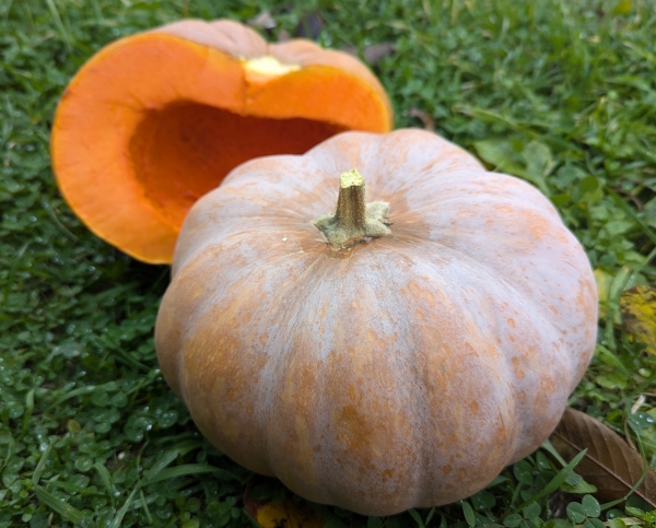 Плоды округлоплоские, красно-оранжевые, с сильно сегментированной поверхностью (ребристые). Удобно разрезать на дольки. Мякоть насыщенного оранжевого цвета, сладкая, с приятным ароматом. Масса плодов 4 - 8 кг. Урожайный сорт среднего срока созревания.