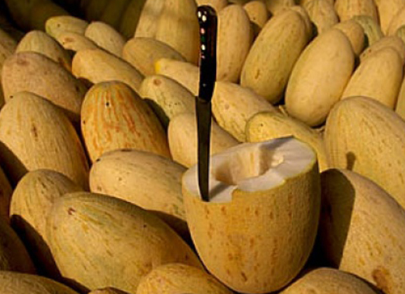 Узбекский сорт. Плоды желтые, с сетчатым узором, продолговатой формы, гладкие. Мякоть белая, сочная, сладкая, ароматная. Масса плодов до 5 кг. Среднепоздний урожайный сорт. Растения мощные, побеги достигают 2 м в длину.