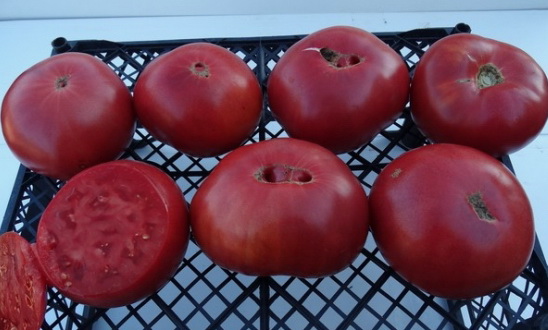 (США) Плоды насыщенного розового цвета, глянцевые,  сочные, с отличным сбалансированным вкусом с фруктовыми нотками. По мере созревания желтые плечики на плодах исчезают. Масса плодов до 800 г. Очень урожайный сорт среднего срока созревания. Кусты высотой около 1,8 м с крупными  картофельными листьями.