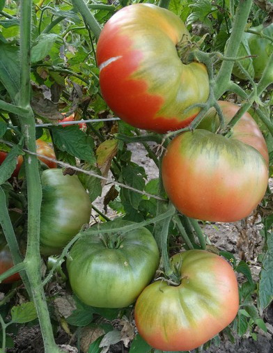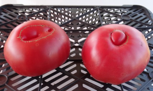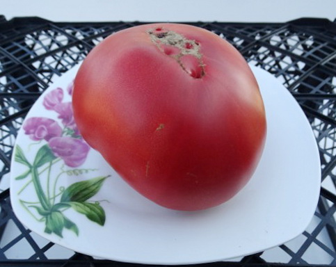 Крупные плоды ярко-малинового цвета, плоско-округлой формы с заметными рёбрышками возле плодоножки, очень вкусные, сладкие, мясистые. Удивительно лёжкие, долго сохраняются на кустах. Масса плодов до 800 г. Высокорослый среднеспелый урожайный сорт, устойчивый к заболеваниям. Мощные кусты высотой около 1,5 м.