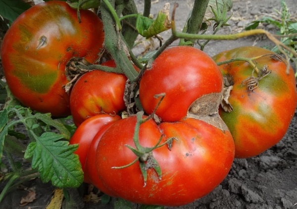 Ровные красивые плоды насыщенного красного цвета. Масса плодов около 600 г, отдельные плоды до 800 г и более. Очень урожайный сорт среднего срока созревания. Кусты высотой до 1,20 м.