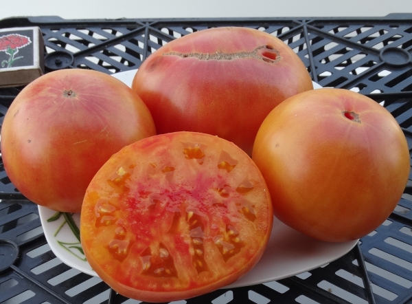 (Канада) Семейная реликвия из Канады. Плоды двухцветные, золотисто-оранжевые  с розовым румянцем и мраморной мякотью. Масса плодов до 300 г.  При полной спелости плоды становятся практически полностью розового цвета.  Имеют очень хороший сладкий вкус. Мякоть сочная, невероятно красивая. Высокоурожайный раннеспелый сорт, плоды созревает намного раньше, чем другие биколоры. Кусты высотой около 1,5 м.
