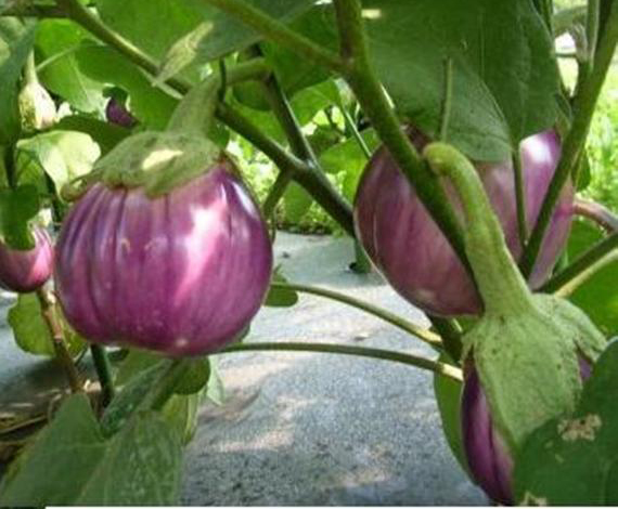 Плоды бело-синий с полосами. Мякоть белая, без горечи. Масса плодов от 350 г. Высота кустов 60-80 см.