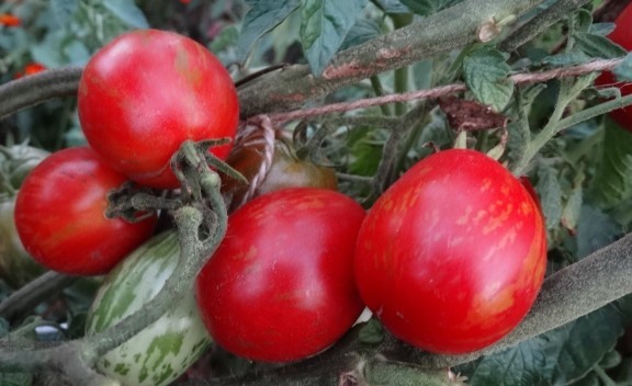 (США) Очаровательные овальные плодики, очень сладкие, яркие и пестрые: на красном фоне золотистые полоски. Масса плодов - около 30 г. Высокоурожайный сорт среднего срока созревания. Кусты высотой до 1,8 м.