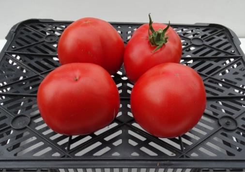 Плоды упругие, красивые, насыщенного красного цвета, отличного качества, вкус прекрасный. Масса плодов 150 - 200 г. Сорт среднепоздний, с очень высокой урожайностью. Кусты высотой до 1,5 м.