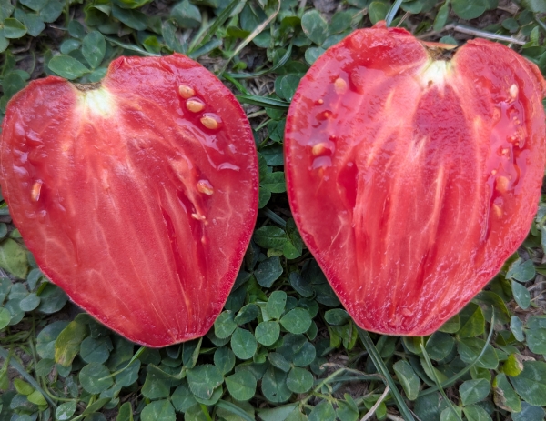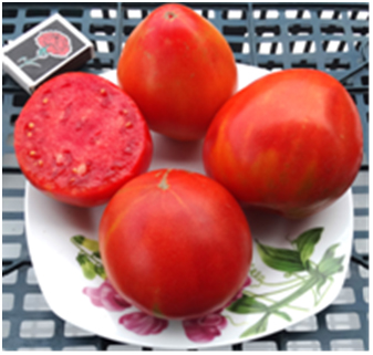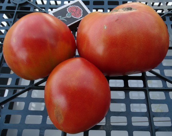 Красные сердцевидные плоды. Масса их около 300 г. Отличный низкорослый сорт. Первые плоды вызревают на уровне раннеспелых сортов. Кусты высотой около 50 см. Устойчивы к заболеваниям.