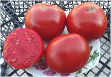 Плоды розовые, сердцевидные, отличного вкуса. Масса плодов 200 - 400 г. Высокоурожайный сорт среднего срока созревания, устойчив к заболеваниям. Незагущенные кусты высотой до 1,6 м.