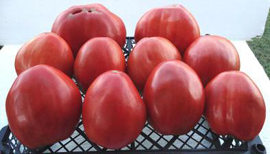 Плоды красные, сердцевидной формы, слегка ребристые, мясистые. Многие плоды имеют вытянутую конусовидную форму с острым концом. Масса плодов от 350 г до 1 кг. Мякоть очень вкусная, насыщенного красного цвета. Кусты высотой до 1,8 м. Очень урожайный сорт среднего срока созревания.