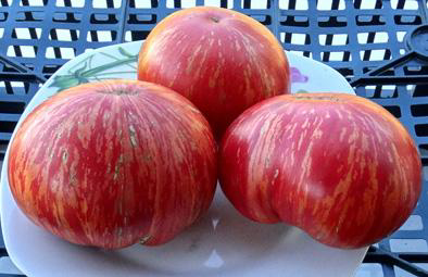 (США) Оригинатор сорта - Брэд Гейтс. Плоды розовые с золотистыми полосками, отличного вкуса. Масса плодов 150 - 300 г. Сорт среднего срока созревания. Кусты высотой до 1,5 м.