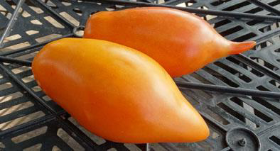 Плоды сладкие, вкусные, удлиненной формы. Сверху они бледно-оранжевые, а внутри насыщенного оранжевого цвета. Масса плодов 100 - 130 г. Очень урожайный среднеранний сорт. Кусты высотой до 1,8 м.