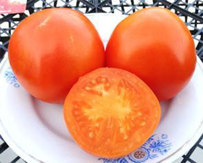 Плоды оранжевые, круглые, гладкие, мясистые, содержат мало семян, имеют насыщенный томатный вкус и аромат. Толстая оболочка без трещин и пятен. В любой сезон этот помидор является одним из лучших как по аромату, так и по текстуре. Масса плодов 110 - 250 г. Высокоурожайный сорт среднего срока плодоношения. Кусты высотой до 1,2 м.