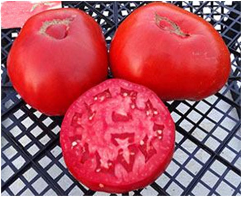 Среднеспелый, высокоурожайный сорт с очень мощными кустами высотой до 1,8 м. Урожайность и одномерность гигантских плодов выше любых похвал. Самый маленький плод был весом 360 г, а самые большие почти 800 г и их было много. Плоды насыщенно-красные, блестящие, без пятен и трещин, с небольшими рёбрышками, мясистые, сладкие, малосочные. Толстая оболочка позволяет плодам выдержать дальнюю перевозку.
