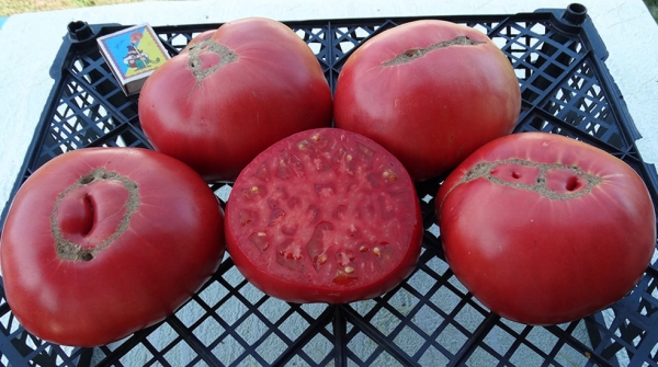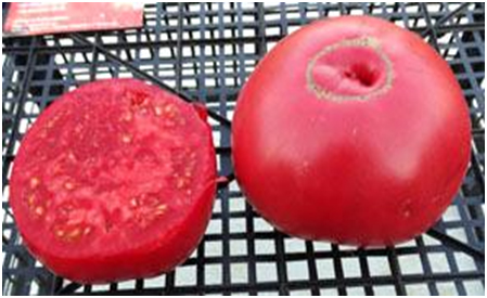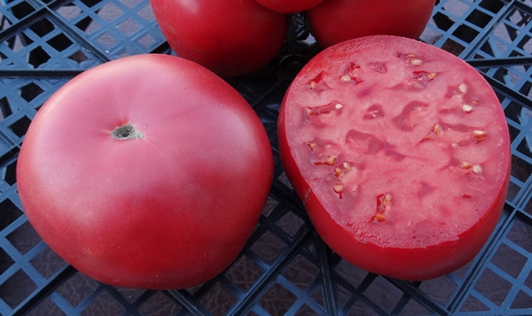 (США) Одномерные плоды-гиганты, насыщенно-розовые, матовые, без пятен и трещин. Мякоть тоже имеет насыщенно-розовую окраску. Масса плодов 360 - 840 г. Плоды мясистые, сочные, сладкие, с прекрасным вкусом и ароматом. Высокоурожайный среднеспелый сорт. Хит сезона. Кусты высотой до 1,8 м.