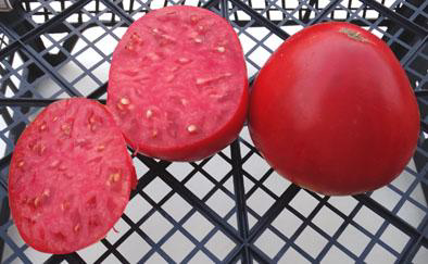 Плоды красно-розового цвета, сердцевидной формы, мясистые и сочные, дружно созревают. Вкус превосходный. Масса плодов 200 - 600 г. Среднеранний сорт. Высота кустов до 1,5 м.