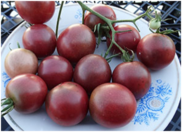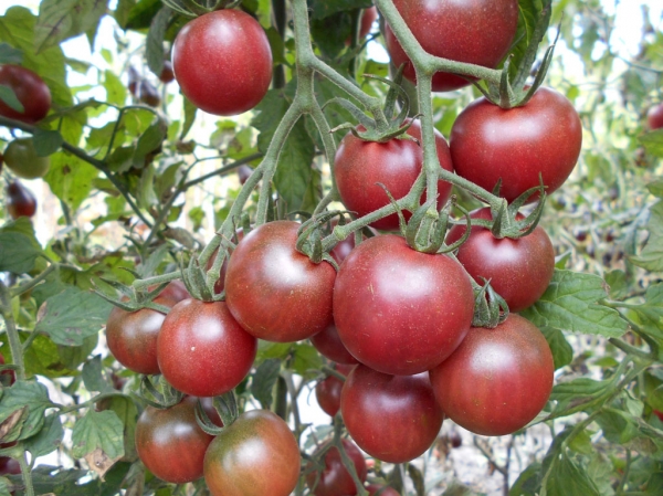 Сорт для гурманов. Плоды круглые, шоколадного цвета, сладкие на вкус и с приятным фруктовым послевкусием, небольшая кислинка только усиливает вкус. Масса плодов 15 - 28 г. Высокоурожайный среднеспелый, сорт. Очень мощные кусты высотой до 1,5 м, имеют удивительную устойчивость или иммунитет к заболеваниям.