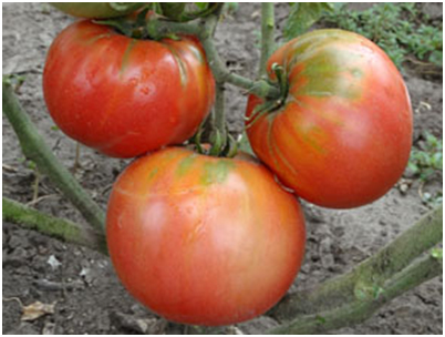(США) Плоды тёмно-розовые, сладкие на вкус. Идеальны для салатов. Масса плодов 300 - 800 г и выше. Среднеспелый, высокоурожайный сорт. Кусты высотой около 1,8 м. Картофельный лист.