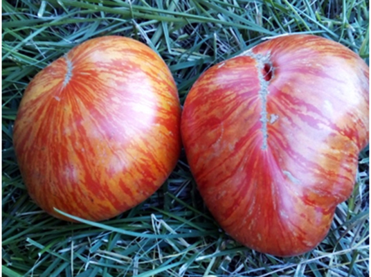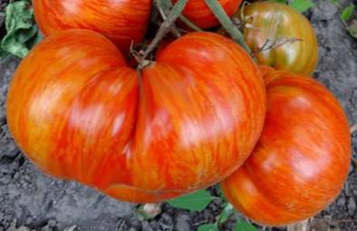 Один из самых красивых сортов в коллекции. Тип «Королевская Красота». Плоды плоскоокруглые, мясистые, сладкие и вкусные, пестрые: на оранжевом фоне красные полосы. Масса плодов 200 - 500 г. Среднеспелый урожайный сорт. Кусты высотой до 1,8 м.