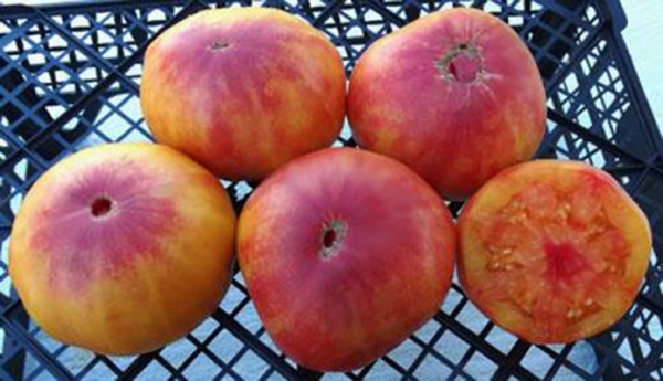 Плоды оранжево-красные, плоскоокруглые, очень вкусные, сладкие. Масса плодов 300 - 700 г. Среднерослый, средне-поздний, очень урожайный и болезнестойкий сорт. Кусты могут вырасти до 1,5 м.