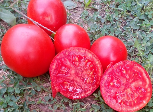 Плоды насыщенного красного цвета, глянцевые, блестящие, с высокими товарными качествами. Масса плодов 70 - 170 г. Высокоурожайный среднеспелый сорт столово-консервного назначения. Кусты высотой до 70 см.