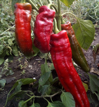 Плоды красные, вытянутые. Средне-ранний, среднерослый сорт с потрясающей урожайностью, некапризный и неприхотливый.