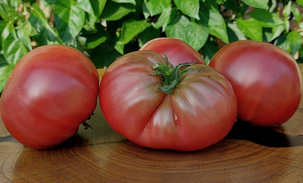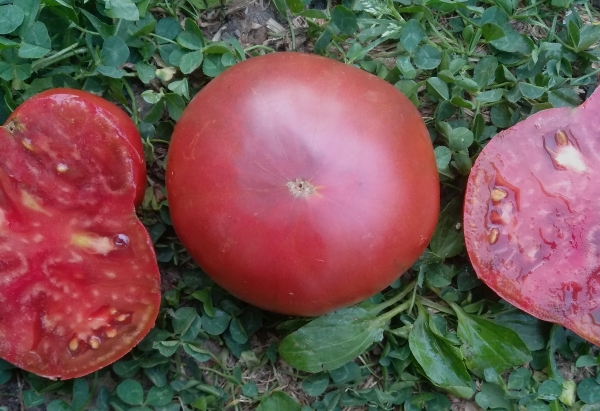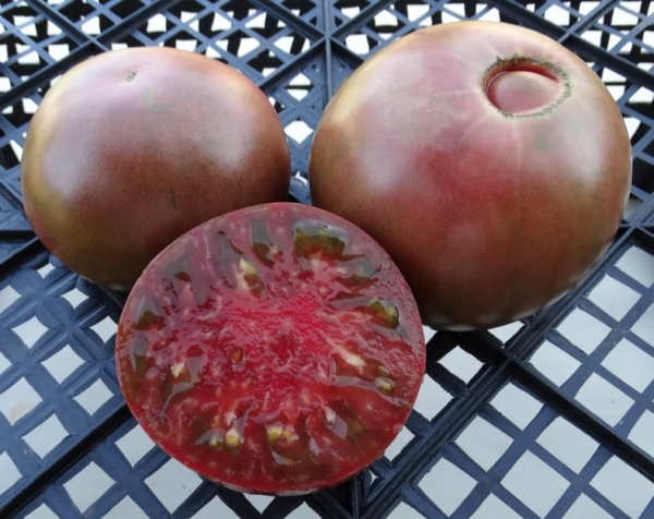 Плоды плоско-округлые, пурпурно-коричневые с зеленым, довольно сочные, имеют отличный, богатый, пряный аромат и великолепный сладковатый вкус. Масса плодов 180 - 320 г. Ранний, низкорослый, урожайный сорт, устойчив к заболеваниям. Кусты высотой до 50 см.