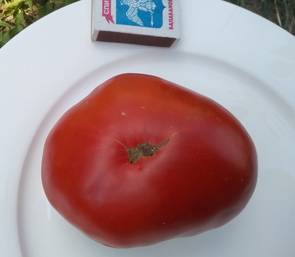 Сорт считается эталоном вкуса. Плоды красные, округло-плоские, очень вкусные, сладкие, толстокорые. Масса плодов 300 - 400 г. Среднеспелый высокоурожайный сорт. Кусты высотой до 1,2 м, средней мощности, требует хорошей подвязки.