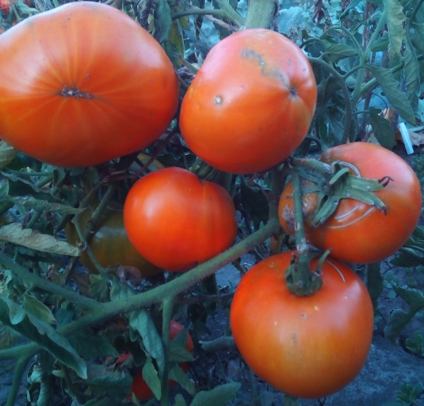 Плоды оранжевого цвета, округлые или плоскоокруглые. Масса плодов 230 - 620 г. Сорт средне-раннего срока созревания. Высота кустов 0,7 - 1 м.