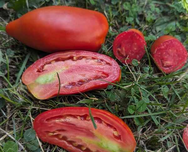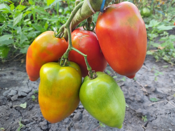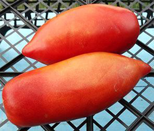 Плоды конусовидные, длиной до 18 см, насыщенного красного цвета, мясистые, с дынной мякотью, сладкие на вкус. Масса плодов 140 - 230 г. Высокоурожайный сорт среднего срока созревания. Кусты высотой до 1,5 м.