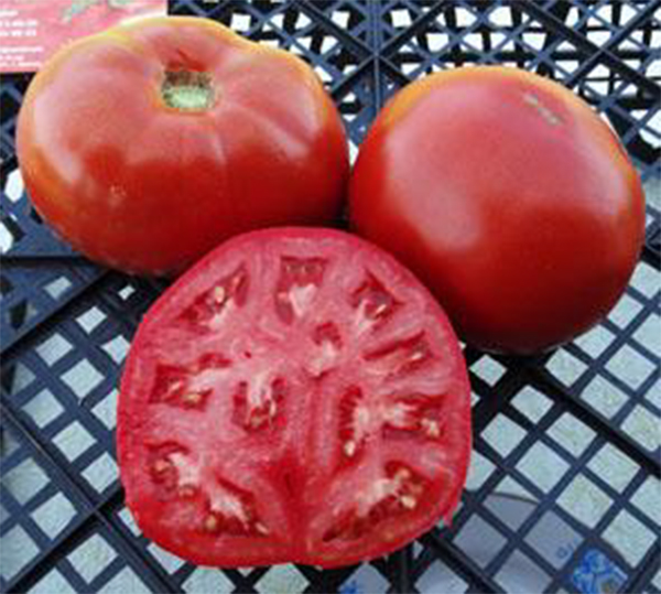 Один из лучших сортов сезона. Плоды красные, глянцевые, округлые, без пятен и трещин, лежкие, с толстой шкуркой, будто специально созданные для перевозки на дальние расстояния. Многокамерные, мясистые, умеренно сочные, и главное вкуснейшие, вкусные и сладкие. Масса плодов 160 - 350 г. Отличный рыночный сорт. Среднеспелый, супер урожайный сорт. Кусты высотой до 1,8 м.