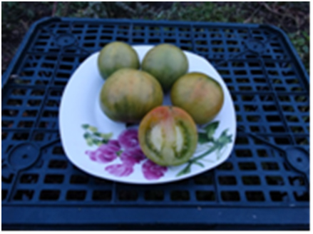 Плоды округлые, ярко-зелёного цвета, ровные, умеренно плотные, не растрескиваются. Мякоть сочная, сладкая. Особенно вкусны в конце сезона. При полном созревании изменяется плотность плодов, они становятся мягкими, а на зелёной кожице появляется лёгкий розовый загар. Масса плодов 60-120 г. Урожайный, среднеспелый сорт. Растения высотой около 1 м, с листьями картофельного типа, требуют подвязки и умеренной формировки.