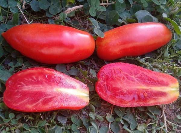 Плоды равномерного красного цвета перцевидной формы, ровные, плотные, мясистые, сладковатые. Масса их 70 - 100 г. Вкусовые качества свежих и консервированных плодов отличные. Среднеранний, высокоурожайный сорт. Кусты слабо облиственные, высотой 50 - 70 см, в теплице могут достигать 1 м.