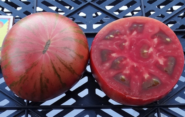(Польша) Плоды плоско-округлые, пестрые: на красном фоне золотисто-зеленые полосы; очень плотные, упругие, мясистые. Мякоть насыщенного цвета, на вкус приятная, сладкая, почти без кислоты. Масса плодов 200 - 300 г. Плоды идеально товарные, подходят для выращивания на больших плантациях и продажи на рынках. Очень урожайный сорт среднего срока созревания. Кусты высотой до 1,3 м.