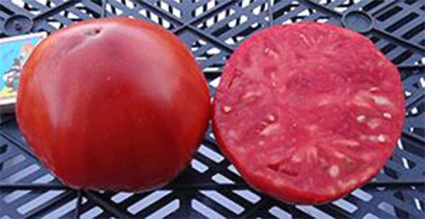 Плоды красные, круглые, почти сердцевидные, но не плоские. Мякоть с небольшими пустотами, малосеменная, арбузная, превосходная на вкус. Плоды прекрасно подходят и для салатов, и для соков. Масса плодов 350 - 650 г. Растения высотой до 1 м, в открытом грунте можно выращивать без пасынкования. Сорт среднеспелый, по урожайности может стать фаворитом сезона. Даже если кусты сильно перегружены урожаем, все плоды успевают вызреть до заморозков.