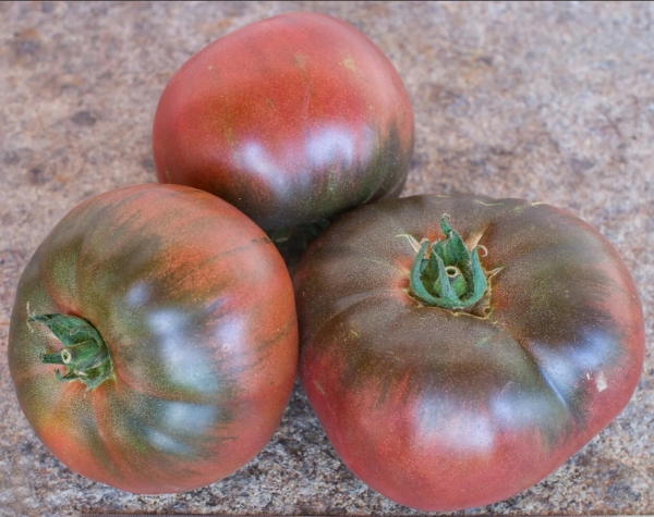Семейная реликвия из Бельгии. Плоды округло-плоские, темно-пурпурные, без пятен и трещин, мясистые, сочные, ароматные, сладость и кислота сбалансированы. Масса плодов 220 - 400 г. Очень урожайный среднеспелый сорт - один из самых продуктивных темноплодных. Кусты высотой до 1,2 м.