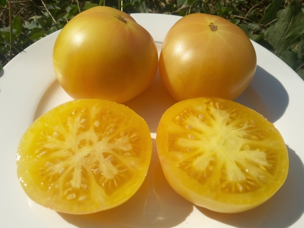Сорт родом из Лаоса. Плоды слегка приплюснутые, цвет колеблется между белым и полупрозрачным желтым. На солнце они желтеют. Если плоды затеняются листвой, то остаются более светлыми, иногда близко к белому. Масса их - 250 - 420 г. Плоды мясистые, вкусные, с удачным балансом сахара и кислоты, хороши для салатов. Кусты крепкие, высотой до 1,8 м. Среднеспелый сорт.