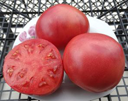 Сорт Брэда Гейтса. Плоды розовые, сердцевидные без острого кончика, иногда широкоплечие, упругие, мясистые, сладкие на вкус. Масса плодов 200 - 400 г и более. Среднеспелый, высокоурожайный сорт. Плоды созревают дружно. Растения высотой до 1,5 м, с поникшими листьями.