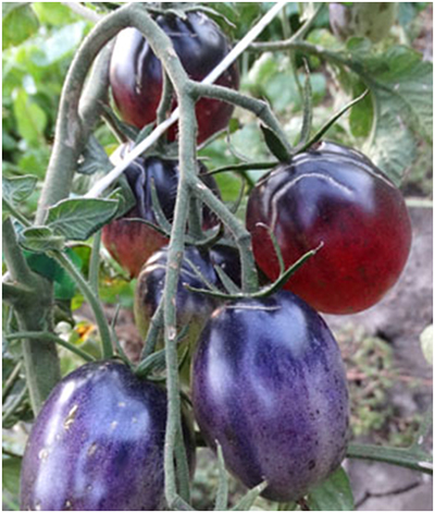 Новинка! Сорт возник в результате случайного скрещивания между «OSU P-20» и «Brandywine Sudduth Strain» в 2011 году. Плоды сливовидные, красно-фиолетовые, отличные на вкус. И спелые, и недозревшие плоды очень красивые. Сорт среднего срока созревания. Кусты высотой до 1,5 м, с картофельными листьями.