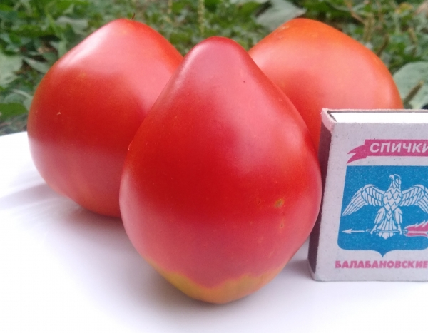 Плоды красные, вытянутой сердцевидной формы, плотные и мясистые. Мякоть зернистая, с гармоничным вкусом. Масса плодов 200 - 300 г. Урожайный сорт среднего срока созревания. Кусты высотой до 1,6 м.