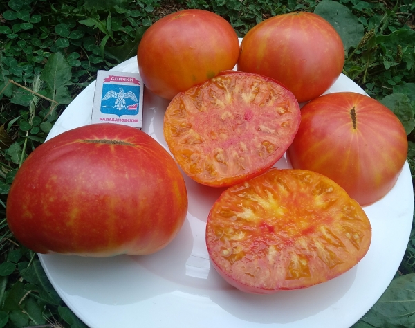 (США) Плоды плоскоокруглые, при полном созревании насыщенно красные с жёлтыми тонкими полосами, очень вкусные, малосеменные. Мякоть оранжевая с красными и желтыми штрихами. Масса плодов до 500 г. Высокоурожайный сорт среднего срока созревания. Кусты высотой 1,8 - 2 м.