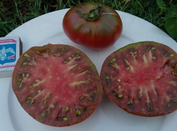 Получен от случайного опыления сорта Капитан Лаки. Плоды плоско-округлые или сердцевидные, темно-малиновые с темными плечиками. Мякоть малиновая, сочная. Кожица нежная, но не склонна к растрескиванию. Масса плодов 200 -500 г. Очень урожайный среднеспелый сорт с высокой устойчивостью. Кусты высотой 1,7 - 1,8 м.