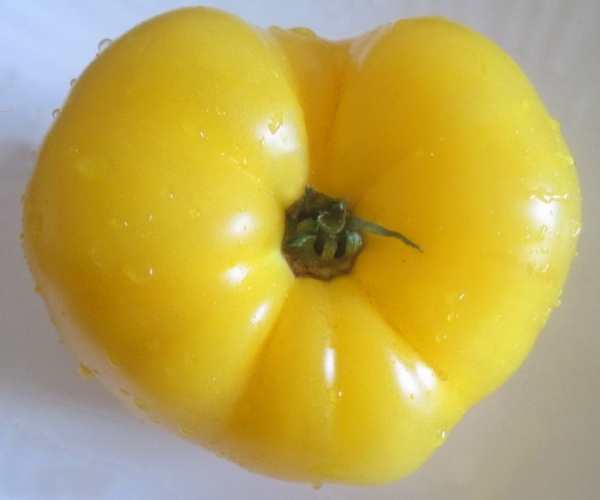 Плоды плоско-округлые, ярко-желтые. Мякоть очень сладкая, медовая, зернистая, очень вкусная. Масса плодов 300 - 600 г, отдельные достигают 1300 г. Плоды обладают неплохой лежкостью. Высокоурожайный среднеспелый сорт. Высота кустов в ОГ до 1,5 м, в теплице - 2 - 2,8 м.